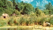 Ons terrein van 11.500 m2 oppervlakte biedt een legio aan mogelijkheden. Al uw zintuigen worden hier geprikkeld. Zo staan er vele kruiden op het terrein, die u uitnodigen tot proeven en ruiken. U kunt het fruit plukken uit onze fruitbomen. De diverse stenen voelen allemaal anders aan en wanneer u aan een van onze programma's meedoet ervaart u dat u van stenen zeer bruikbare werktuigen kunt maken. Wanneer u 's morgens uw tent openritst wordt u overdonderd door het magnifieke uitzicht op een van de hoogste bergen van de Pyreneeën: de Canigou. Vanaf juni is het voor bijna iedereen mogelijk de top van de Canigou (te voet of per jeep) te bereiken. Dit levert een spectaculair uitzicht op: Spanje, de Middellandse zee, de Roussillion en vele bergmeren in de omgeving. Langs het terrein loopt een bergbeek: de Cady. De beek heeft ijskoud helder smeltwater dat direct van de Canigou afkomstig is. Er bevindt zich ook een ondiep meertje op het terrein, dat zachtjes stroomt. Hierin zitten forellen (een 'must' voor de liefhebber van forelvissen). Op het terrein is een bron waaruit helder water omhoog welt dat zeer goed smaakt. Wanneer u geluk hebt komt u wilde zwijnen tegen. Ze komen soms heel dichtbij en de kleine zwijntjes zijn zeer aandoenlijk. Er zijn vele soorten vlinders en libelles te zien en de hagedissen ontbreken natuurlijk ook niet. Zelf hebben wij natuurlijk ook dieren: 2 katten, en soms lopen er een aantal eenden en kippen op ons terrein rond. De gemiddelde zomertemperatuur is 30 graden. In het voor- en naseizoen is de temperatuur ongeveer zo'n 24 graden. |